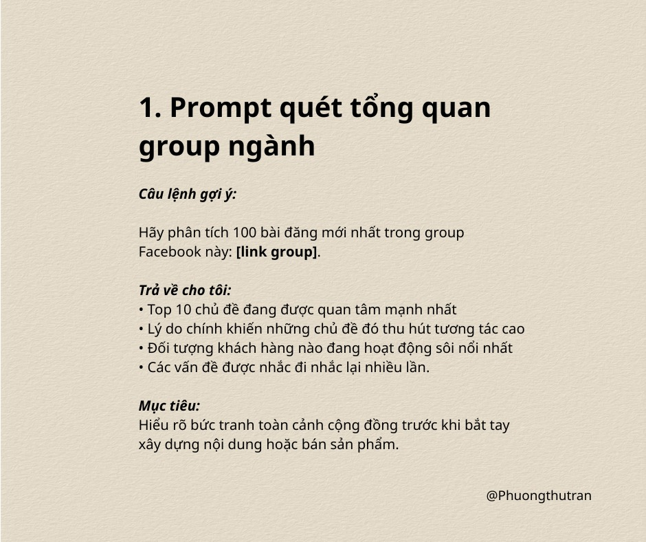 Mục tiêu: Chuyển từ insight trực tiếp thành bài đăng sẵn sàng up ngay, tiết kiệm thời gian.