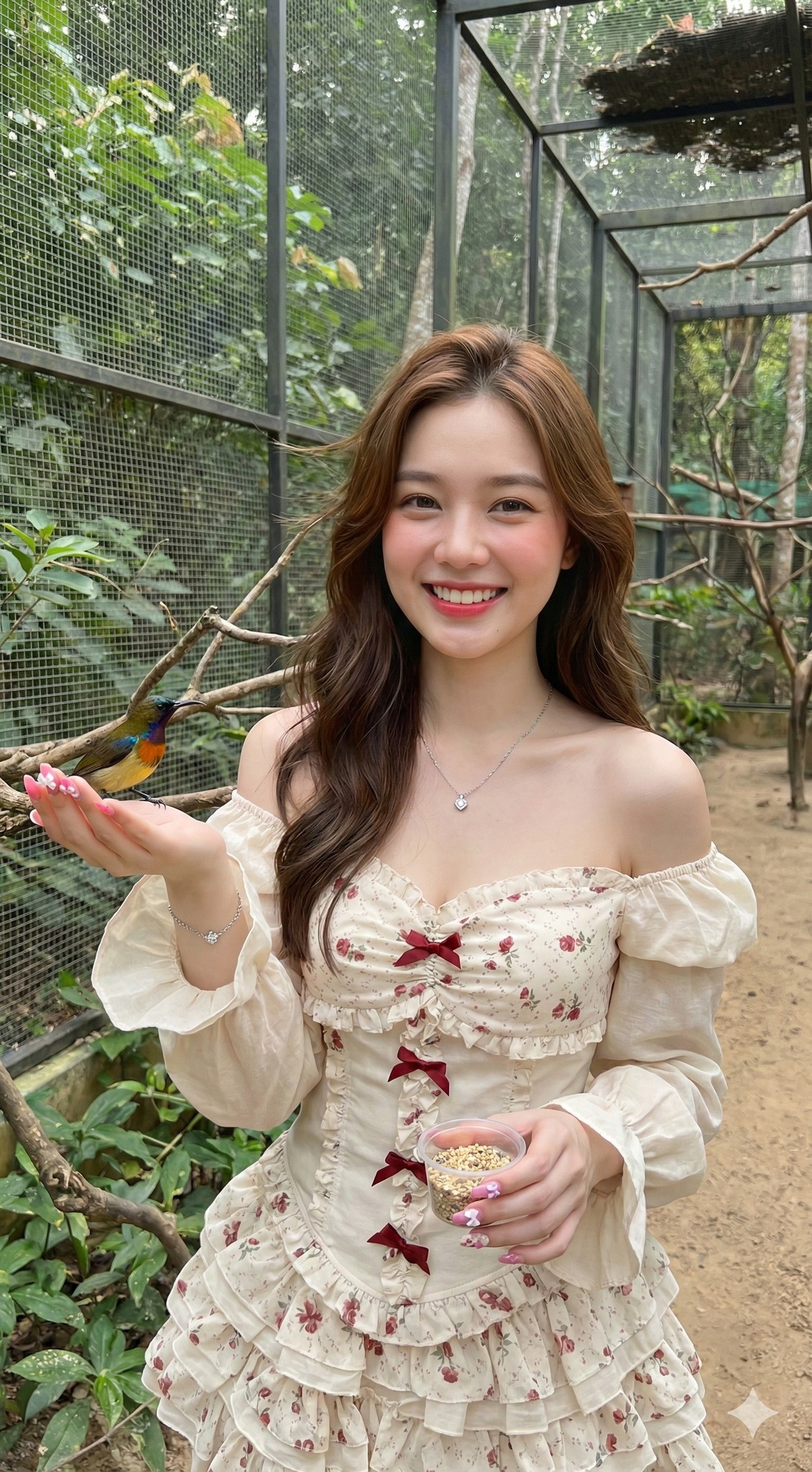 The location appears to be a large zoo/bird park (bird enclosures are accessible).