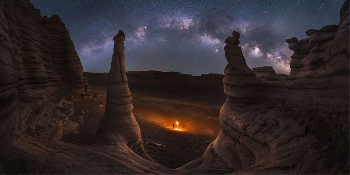 Jinyi He chụp bức ảnh này tại Tân Cương, Trung Quốc. Đây là sa mạc Dahaidao, một nơi không có người sống. Những ngọn đồi hình thù kỳ lạ ở đây được hình thành do gió.