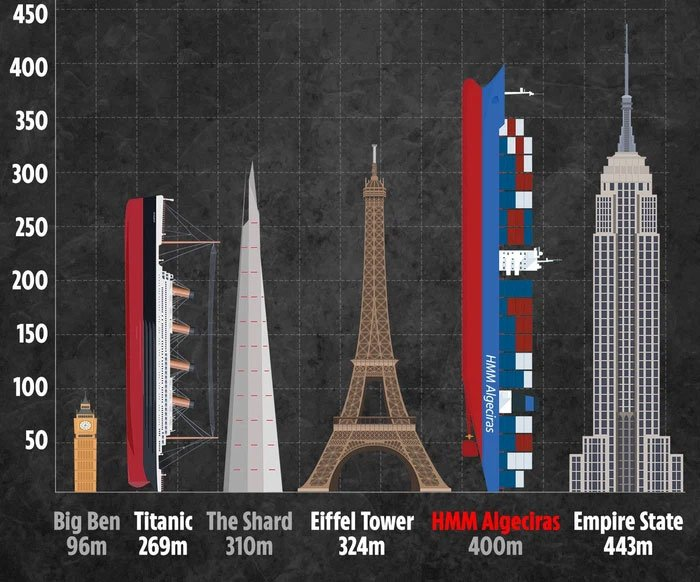 So sánh tàu biển Ever Given với một số công trình nổi tiếng thế giới.