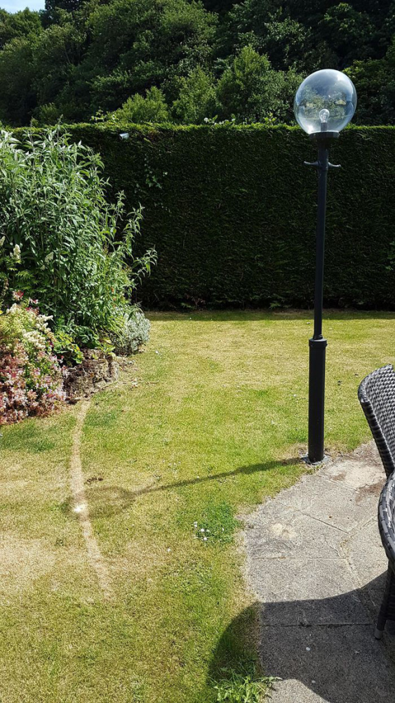 Ngày qua ngày, anh sáng hội tụ qua bóng đèn đã đốt cháy một vệt dài trên bãi cỏ
