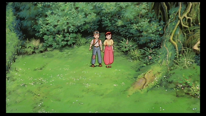 Bên cạnh đó, những con người trẻ tuổi trong bộ phim là Sheeta và Pazu luôn sẵn sàng hi sinh bảo vệ lẽ phải, bảo vệ lý tưởng của bản thân cũng chính là hình tượng nhân vật mà tác giả muốn mọi người hướng đến để hoàn thiện. Sau cặp nhân vật Howl và Sophie trong Howl’s Moving Castle, có lẽ Sheeta và Pazu là cặp nhân vật Ghibli được mình bình chọn tiếp theo bởi vì cặp đôi này rất dễ thương và rất…. hợp.
