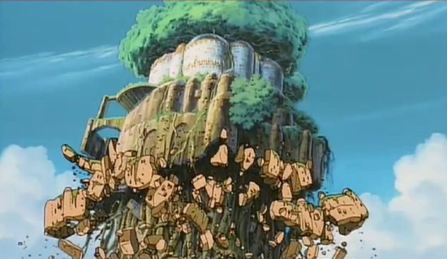 Kết thúc phim, phần còn lại của thành phố Laputa sau trận đổ nát tiếp tục bay lên ra xa khỏi Trái Đất.