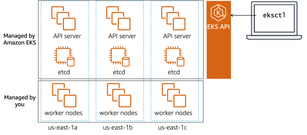 The Amazon EKS control plane consists of at least two API server nodes and three etcd nodes across three Availability Zones. Amazon EKS automatically detects and replaces unhealthy control plane nodes, which removes a significant operational burden for running Kubernetes. With this capability, you can focus on building your applications instead of managing AWS infrastructure.